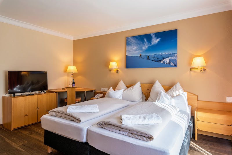 Doppel- und Mehrbettzimmer (25 – 30 m2) mit Bad o. Dusche/WC, Telefon, Sat-TV, Zimmersafe, Föhn, Sitzecke und zum Teil Balkon