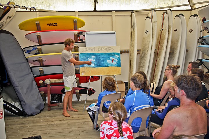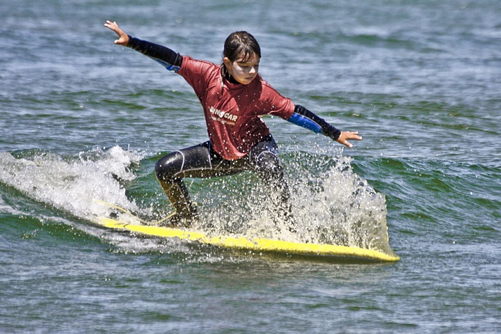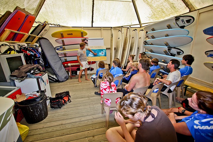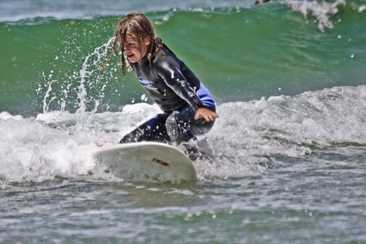 Anfängerkurs: Mit viel Spaß lernen die Kinder das Gleiten auf einer gebrochenen Welle bis zum Strand. Spielerisch lernen sie, sich mit Meer und Wellen auseinander zu setzen und auf dem Surfbrett zu balancieren. Sicherheit wird GROSS geschrieben! Wir legen großen Wert auf die qualifizierte Ausbildung unserer Surflehrer. Die Kursteilnehmer lernen jeden Tag in kleinen Theorieeinheiten etwas Neues über das Wellenreiten, das Meer, das Wetter und die Wellen. Erwachsene können ebenfalls ins Kursgeschehen integriert werden bzw. nach Bedarf auch an Extra-Kursen teilnehmen. Je nach Zusammensetzung des Kurses wird der Unterricht differenziert auf die jeweiligen Bedürfnisse angepasst.