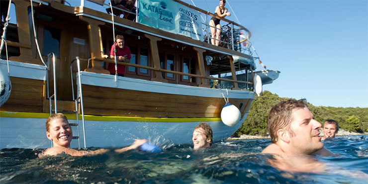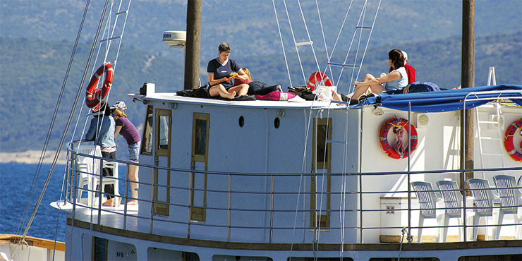 Mit dem Mountainbike erkunden wir, oft auf einsamen Pfaden und Naturwegen, eine Woche lang Nationalparks und die Inselwelt der Kornaten. Abends treffen wir unser Schiff wieder, unsere schwimmende Unterkunft. Wir relaxen an Bord oder bummeln noch einmal durch die historischen Hafenstädte, genießen den Sonnenuntergang und die gute Bordküche. Schließlich legen wir uns schlafen - in der Kajüte oder an Deck unter tausend Sternen. Wer will, kann jederzeit auf eine Biketour verzichten und den Tag auf dem Schiff verbringen.